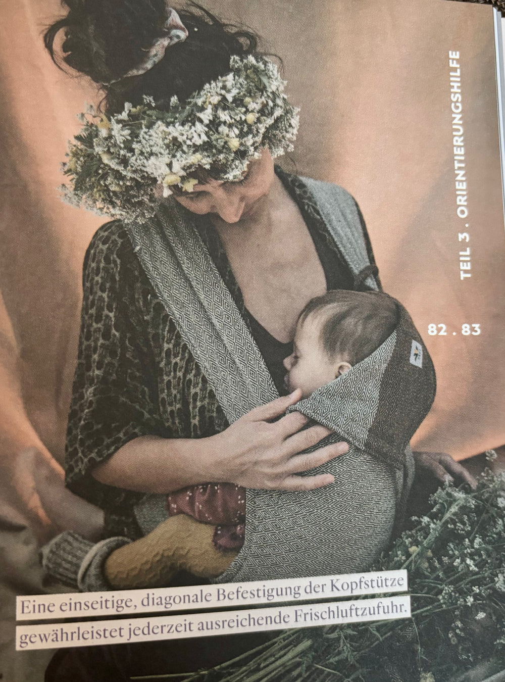 Dieses Buch von Lisa-Maria Rebhandl ist 2024 im Eigenverlag erschienen. Sich abwechselnd mit schönen Bildern und Zitaten findet sich viel Wissen rund um das Thema Tragen. Es bietet sich an zum mal schnell etwas nachschlagen, aber auch zum tief eintauchen.
