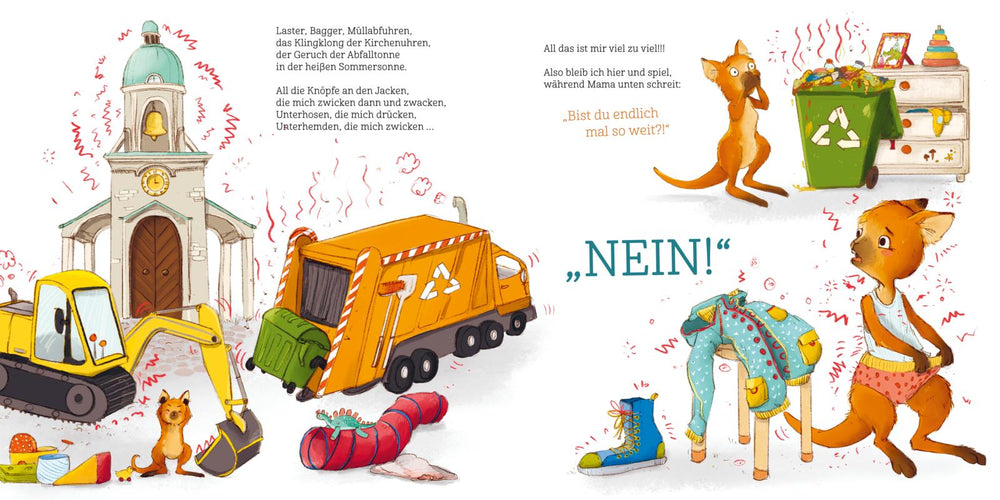Große Gefühle begleiten das kleine Känguru und stellen die ihn begleitenden Großen teilweise vor ganz schöne Herausforderungen. Auf eine Aufforderung nicht schnell genug reagiert? - Das löst einen ganzen Sturm aus. Den Übergang vom Spielen zum losgehen schaffen? - Fast unmöglich. All die Gerüche und Geräusche draußen? - Nein.