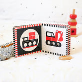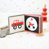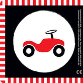„Baby Cars“ enthält kontrastreiche Illustrationen in Schwarz-Weiß und Rot. Babys kennen die Farbe Rot aus Mamas Bauch, daher ist es die erste Farbe, die sie von Geburt an erkennen können und die für Beruhigung sorgt.