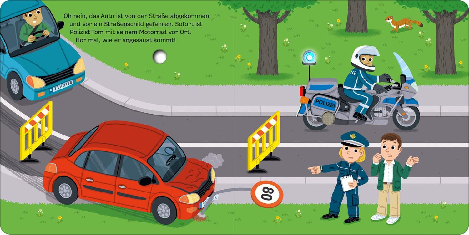 Weißt du, wie das Feuerwehrauto klingt? Oder das Polizeimotorrad? In diesem Buch kannst du es entdecken. Begleite die Feuerwehr und die Polizei auf ihren Einsätzen auf der Straße, in der Luft und auf dem Wasser. Schalte die Sirenen und das Blinklicht ein und helfe den Feuerwehrleuten und Polizisten bei der Arbeit!