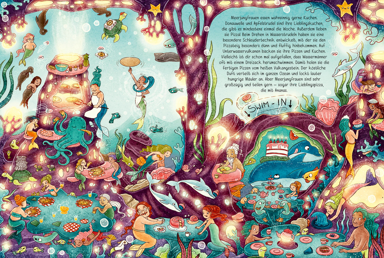 Ihr liebt Wimmelbücher, ganz besonders magische mit Fabelwesen, Nixen und Unterwasserbewohnern? Du suchst Bilderbücher ab 4 Jahren mit modernen Illustrationen und lustigen Erzähltexten? Dein Kind fragt dir ein Loch in den Bauch und lacht sich kringelig über andere Kinderfragen?