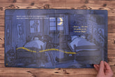 Doch da ist nichts zu sehen. Mit Taschenlampe und jeder Menge Mut bewaffnet geht die Suche nach dem seltsamen Geräusch nun los. Zuerst im Badezimmer: Als die Kinder das Licht anschalten, hängt da aber nur der Regenmantel in der Badewanne. Und auch in der Küche entpuppen sich die gruseligen Schatten nur als Herd und Spüle. Wo kommen die nächtlichen Geräusche dann her?