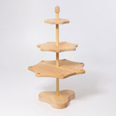 Etagere zum Dekorieren mit Blumen, Früchten, Püppchen... an Weihnachten, Ostern oder zum Geburtstagsfest. Jahreszeitenständer nach Karl-Heinz Flau. Die 3 Etagen sind in der Höhe verstellbar. Auf der untersten Etage sind 7 Löcher für Kerzen. Für eine Postkarte ist ein Schlitz im Fuß. Der Stab ist oben geschlitzt, so kann der Ständer auch als Adventskranzständer genutzt werden.
