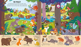 Bei Aktivierung des Spielbuttons wird nach Tieren gefragt, die auf der jeweiligen Themenseite gefunden und gedrückt werden können. Der Sound der Lösungskontrolle verrät, ob man richtigliegt oder noch einmal suchen muss.