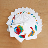 Passend zu unserem Legespiel Viereck, finden Sie in diesem Büchlein zweidimensionale Vorlagen für den Einstieg und kubische Vorlagen, die etwas kniffliger sind.
