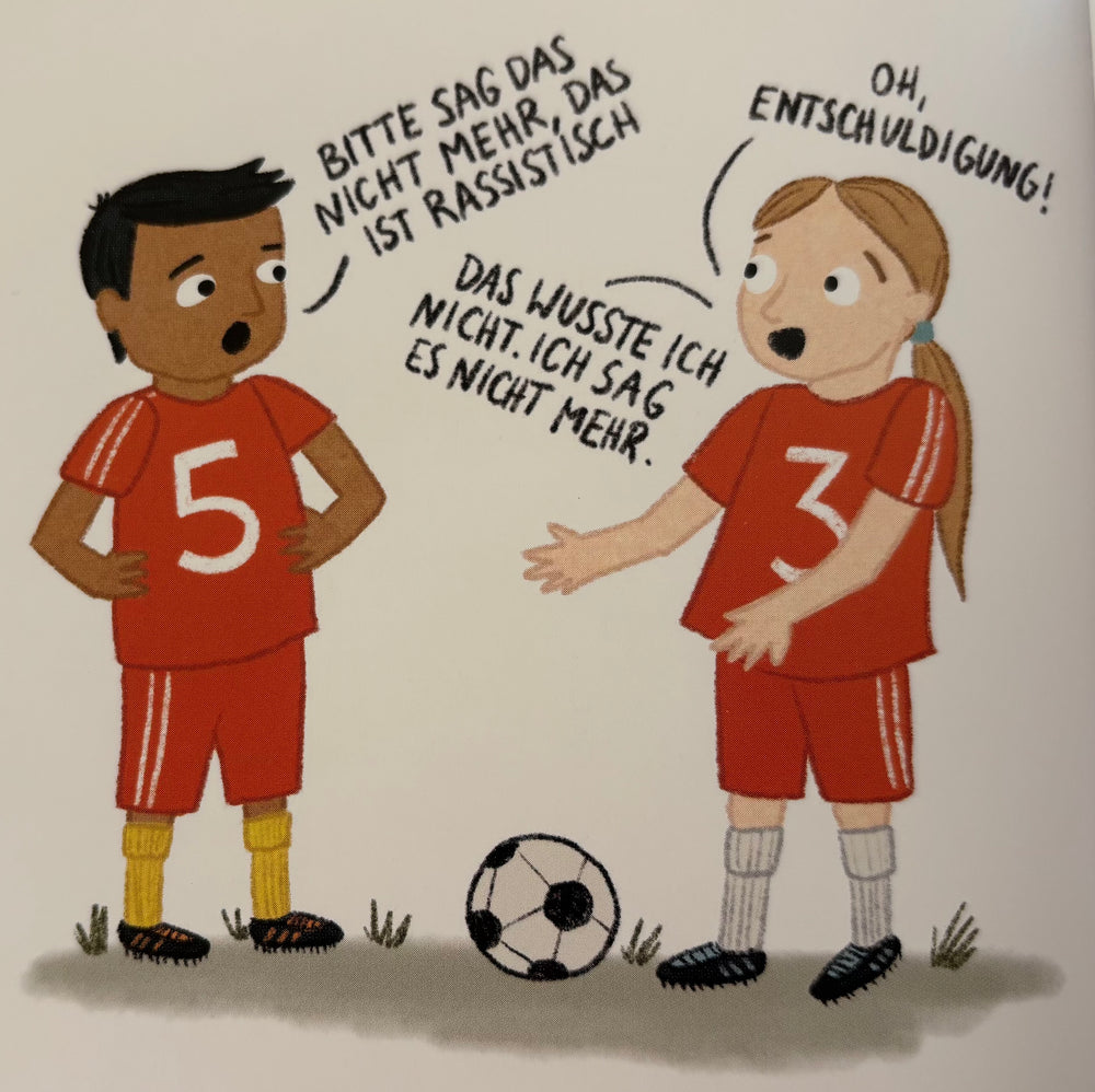 Das ganze Buch über wird Seite für Seite sensibilisiert, wie Rassismus aussehen kann, wie wir ihn erkennen können, ja auch selbst vermeiden können an Stellen, die uns bisher vielleicht nicht bewusst waren. Zuhören und den Mund aufmachen. Für andere Menschen einstehen. Das ist wichtig. Und hochaktuell.