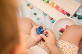 "‘Mis and Match’ ist eine Sammlung bunter Würfel in einer hölzernen Sortierbox. Ob für freies Spiel oder zur Erstellung von Mosaiken, Kinder werden mathematische und geometrische Konzepte erleben, indem sie sie mit ihren Händen erkunden.