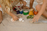 Dieses Set enthält 6 Töpfe in verschiedenen Farben, Größen, Volumen und Formen. Sie sind perfekt für die Förderung der sensorischen Entwicklung geeignet. Sie können mit unseren Werkzeugen kombiniert werden.