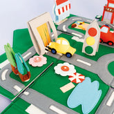 Das robuste Design und die sorgfältige Verarbeitung aus Filz und kinderfreundlichen Materialien machen das Playset ideal für die stürmischen Abenteuer des Kindes. Es hält dem Eifer kleiner Entdecker stand und bleibt über lange Zeit ein treuer Spielgefährte.