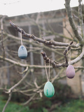 - 3 handbemalte Holzeier in sanften Farbtönen