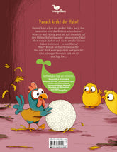 Danach kräht der Hahn! Heinrich ist schon ein großer Hahn, na ja fast. Immerhin wird das Krähen schon besser! Wenn er mal richtig groß ist, soll Heinrich auf den Hühnerhof aufpassen – genauso wie Papa! Aber warum darf er sich nicht um die kleinen Küken kümmern – so wie Mama? Was?! Brüten ist nur Hennensache? Das wär‘ doch wohl gegackert und gelacht! Also schnappt Heinrich sich ein Ei und legt los …