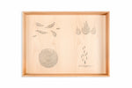 Eine hölzerne Box aus Buchenholz (45x65x7 cm) mit den 4 Elementen der Natur, handgefertigt und gestempelt.