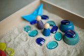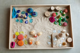 Die Box wird zu einem sensorischen Spiel, wenn sie mit Sand, Mehl, Salz, Reis usw. gefüllt ist.