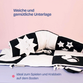 Die Krabbeldecke Black and White in Kontrastfarben ist nicht nur ein stilvolles Accessoire für das Kinderzimmer, sondern auch förderlich für die Sehentwicklung des Babys. Die kontrastreichen Schwarz-Weiß-Muster regen die visuelle Wahrnehmung an und helfen dabei, die Augenmuskulatur zu trainieren. Die Decke bietet zudem eine weiche und gemütliche Unterlage zum Spielen und Krabbeln. Eine praktische und zugleich förderliche Ergänzung um die Entwicklung des Kindes zu unterstützen.