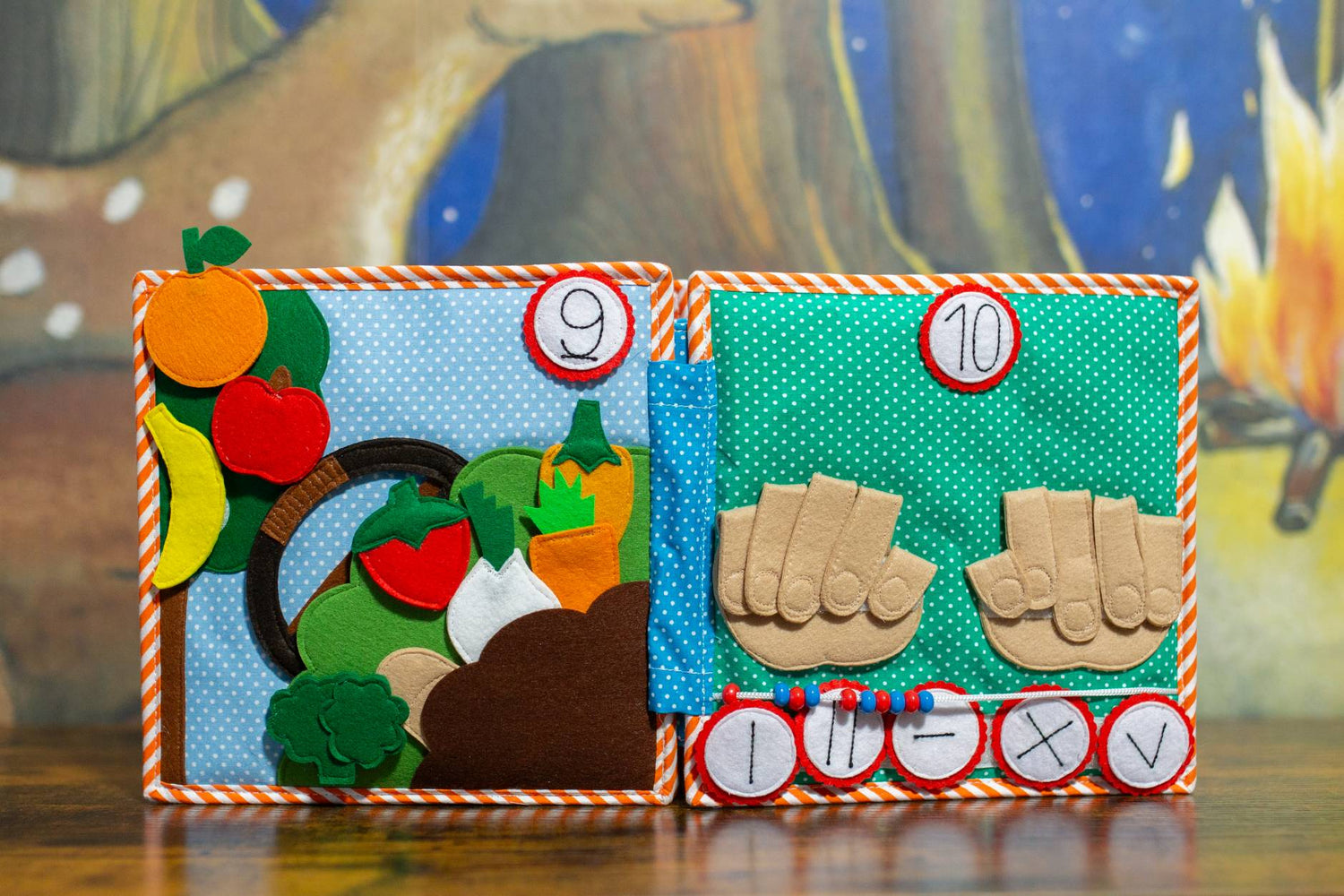 1,2,3 - Quiet Book hat 10 kreative und lustige Seiten und lädt ein, die Zahlen 1 bis 10 kennenzulernen. Die individuellen Fähigkeiten deines Kindes werden gefördert und die Entwicklung wird ideal unterstützt. Es sorgt für Spielfreude und ist auch perfekt als Motorikspielzeug ab 3 Jahren geeignet.